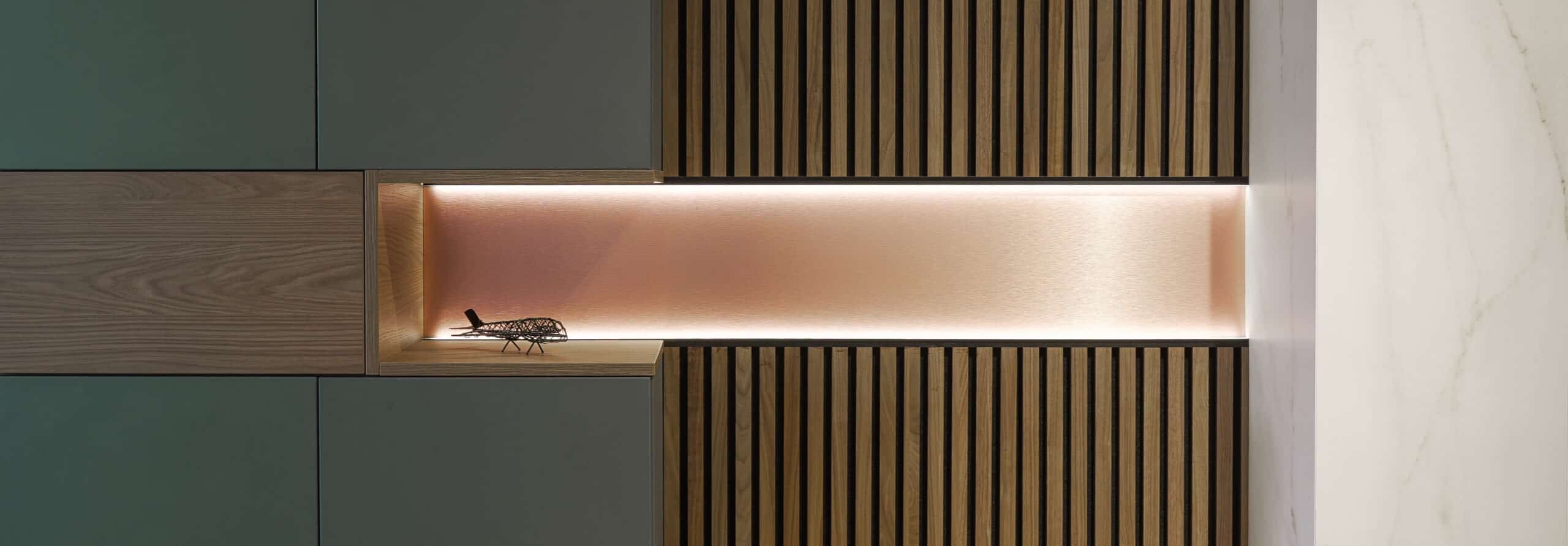 Placards dissimulés, meubles bas avec tiroirs, niches ouvertes ou fermées : nous tirons parti de chaque mur pour organiser l’espace sans le surcharger. En fait, nos architectes conçoivent avec vous des solutions discrètes, élégantes et parfaitement intégrées.