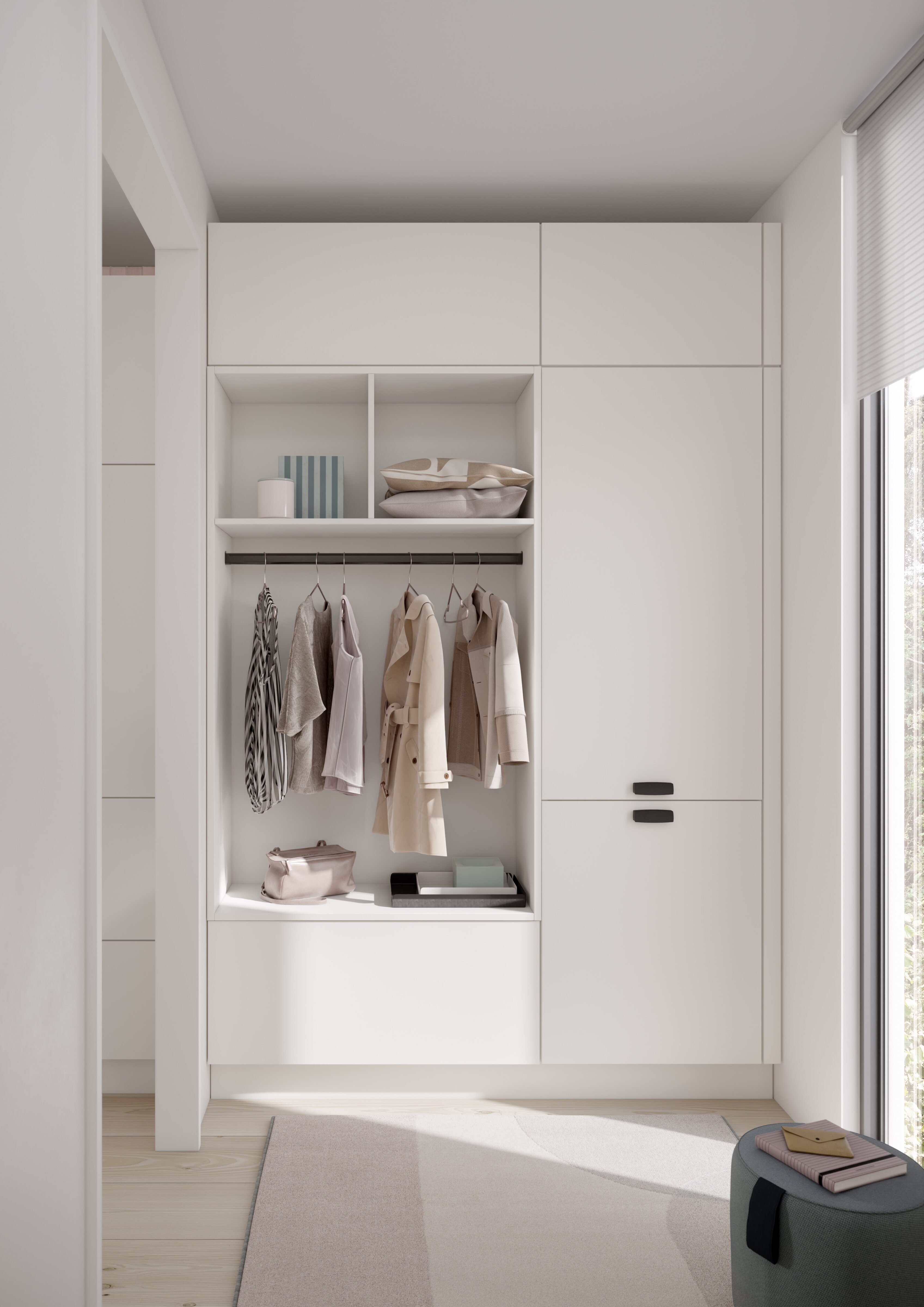 Alors, en fonction de la configuration, nos architectes déterminent les zones clés : dépôt des chaussures, des manteaux, des sacs. En fait, nous cherchons toujours à éviter les obstacles, à faciliter les mouvements et à conserver une impression de légèreté visuelle.